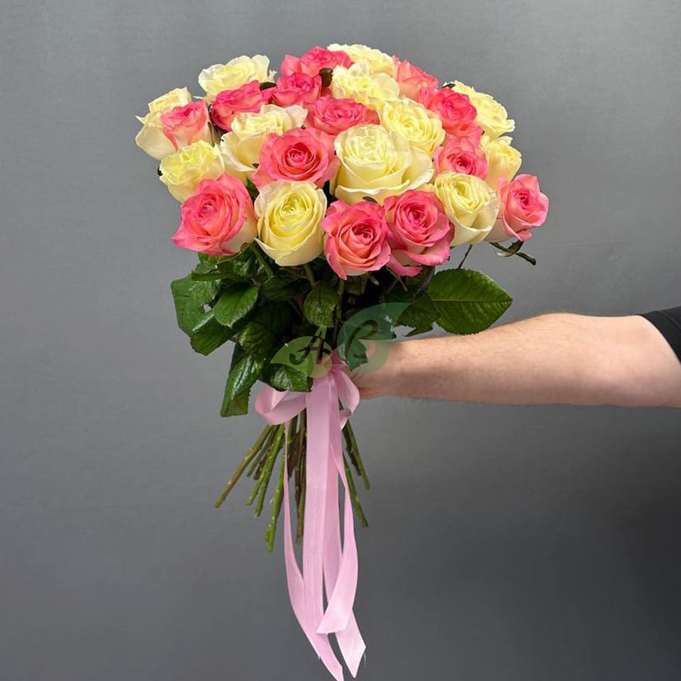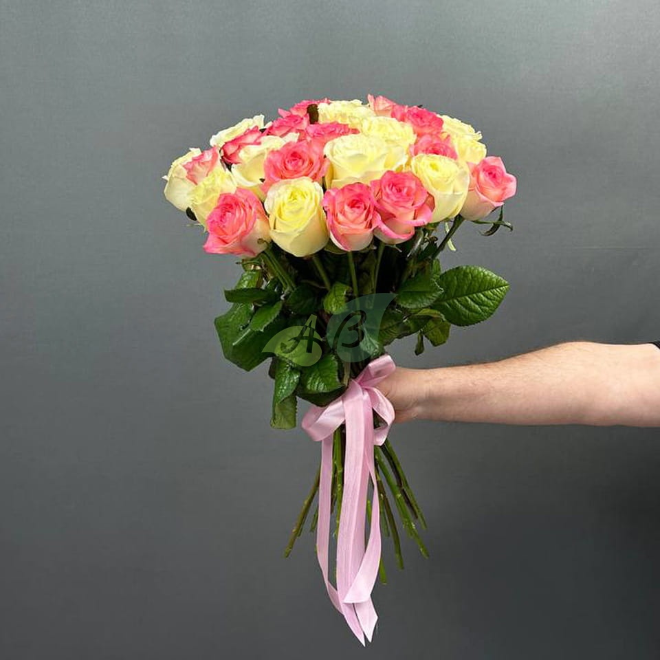 Шикарный букет из 25 белых и розовых роз